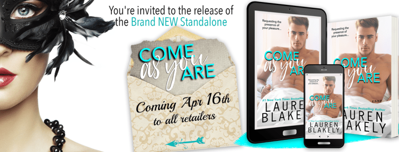 What do you get when you mix a multi-millionaire, a mystery woman, explosive passion, and the perfect night? A brand new standalone romance from #1 New York Times bestselling author Lauren Blakely that will have you swooning and asking for more! You’re invited to experience COME AS YOU ARE, a sexy and romantic contemporary romance, … Continue reading COME AS YOU ARE – A Lauren Blakely Cover Reveal